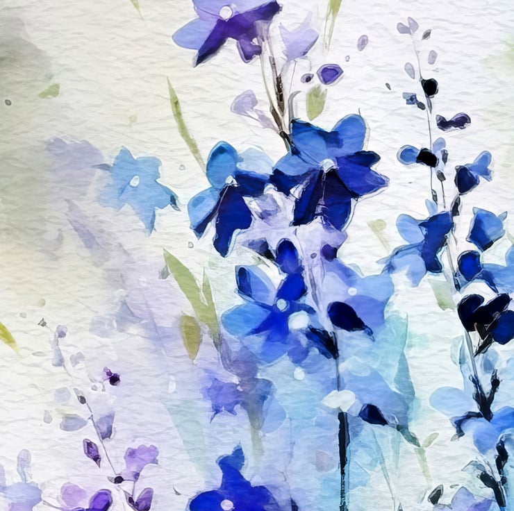 Welcome a breath of fresh air into your space with this Blue Floral Watercolor Print. At 5"x7", this piece is the perfect size to add a splash of color and elegance to any wall. The print features a lush bouquet of blue flowers, delicately painted with a watercolor touch that brings out the vibrancy and tranquility of a blooming garden.