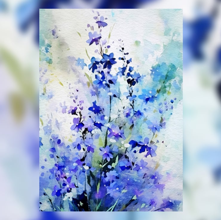 This artwork is an ode to the beauty of nature and the serenity it can bring into our homes. The soft washes of blue and gentle brush strokes create a peaceful ambiance, perfect for a bedroom, living area, or a quiet nook in need of a touch of spring's beauty.