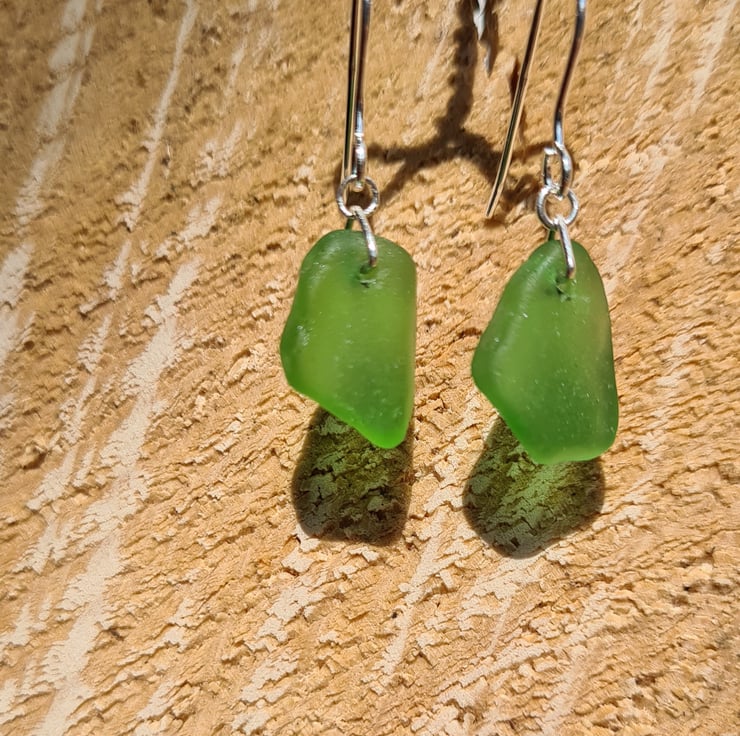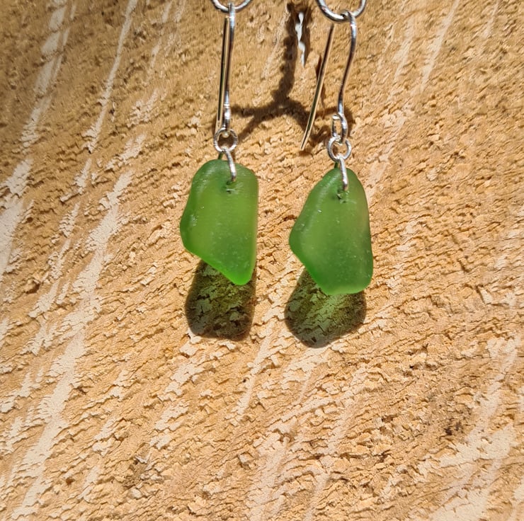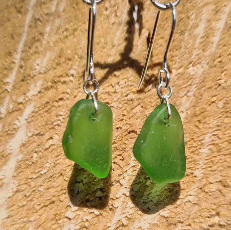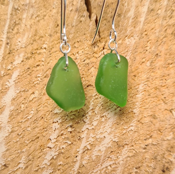 These petite chips of seaglass were found along the North East coast, it took many visits over the course of a year to find two pieces of similar shape and shade to match and craft this pair of earrings. The pieces are naturally tumbled by the sea, we do not tumble or reshape the glass. This is why seaglass tends to have imperfections or 'C' marks which occurs from being dashed against the shore.