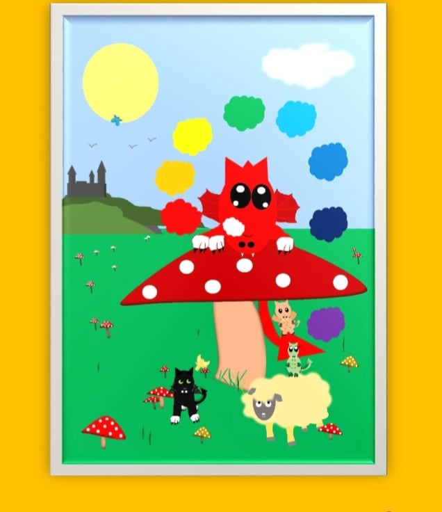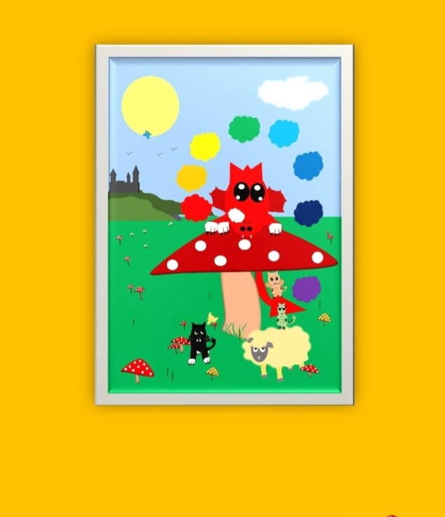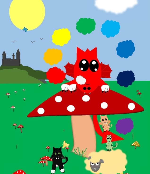 A friendly chakra breathing dragon on a toadstool.