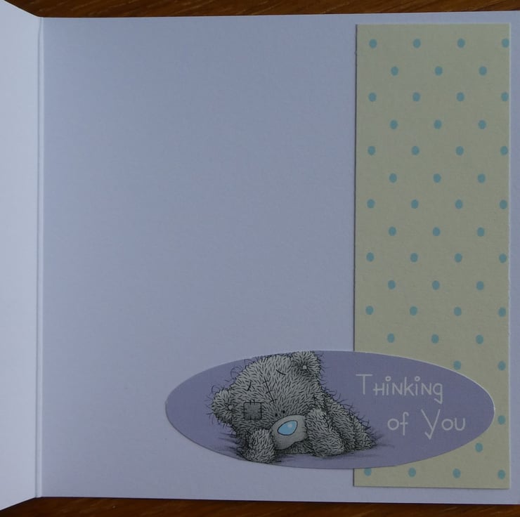 Tatty Teddy standing looking up with the messages 'Best of luck' & 'Thinking of You'.