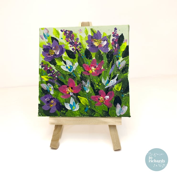 10x10cm mini hand painted canvas, one of a kind, signed and dated by the artist. Comes complete with mini display easel, wrapped and delivered within the UK.
