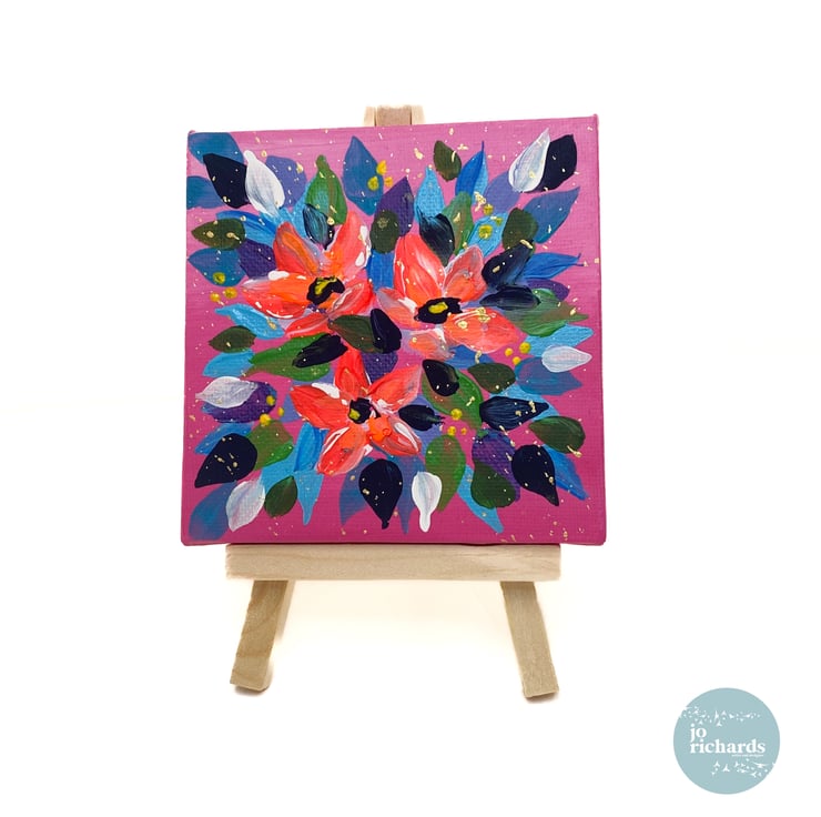 10x10cm mini hand painted canvas, one of a kind, signed and dated by the artist. Comes complete with mini display easel, wrapped and delivered within the UK.