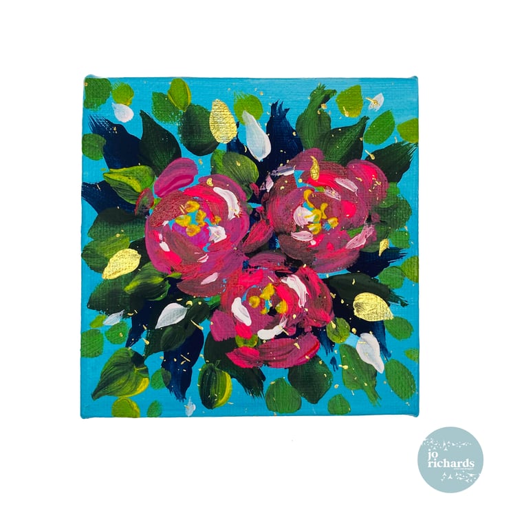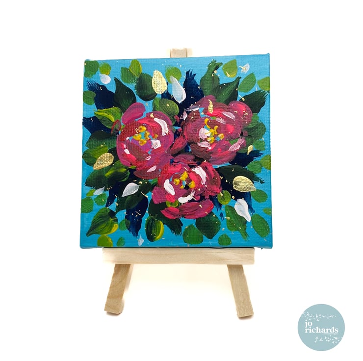 10x10cm mini hand painted canvas, one of a kind, signed and dated by the artist. Comes complete with mini display easel, wrapped and delivered within the UK.