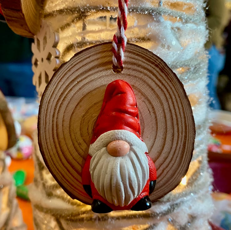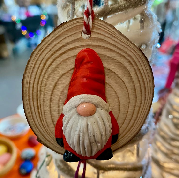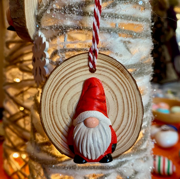 These hand painted plaster ornaments on wood slices make great Christmas ornaments and look fab hung on a tree. Why not but one for a friend to wish them a Happy Gonkmas!