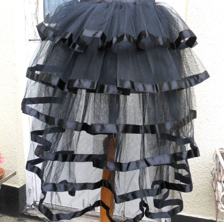 Bustles can be made to order in any colour net you want, trimmed in ribbon or lace and with as many tiers as you want. Just contact me with what you would like.