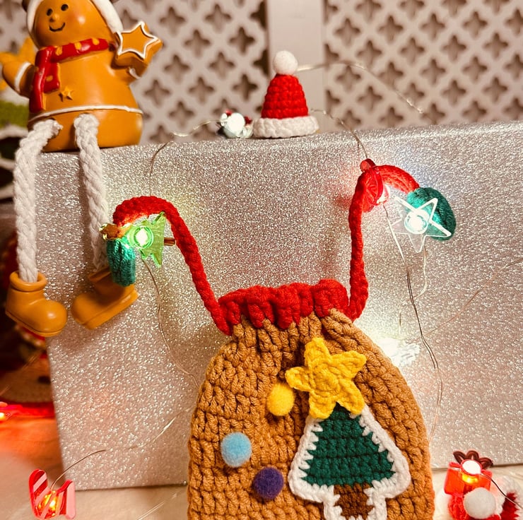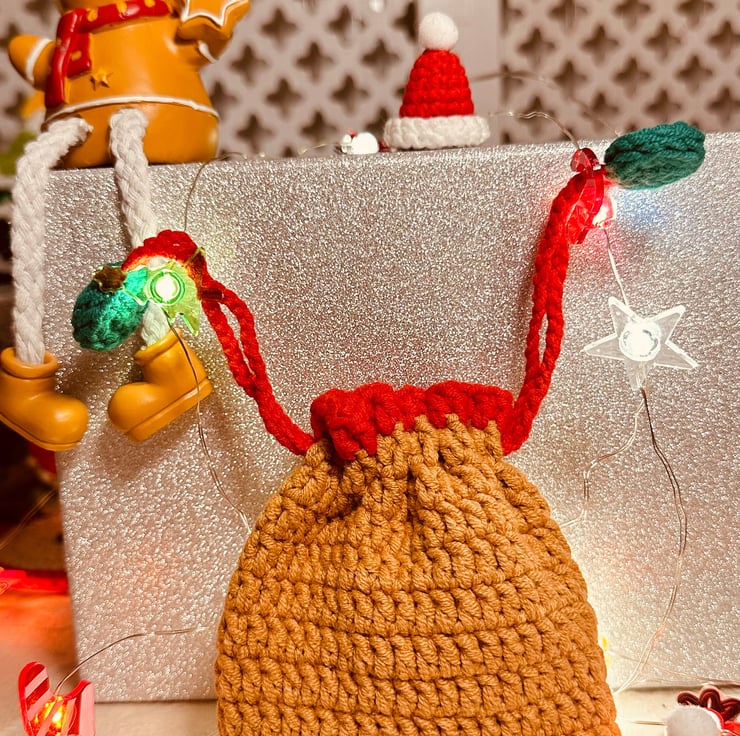 Unwrap the Holiday Magic: Introducing Our Handcrafted Christmas Knit Drawstring Bag!