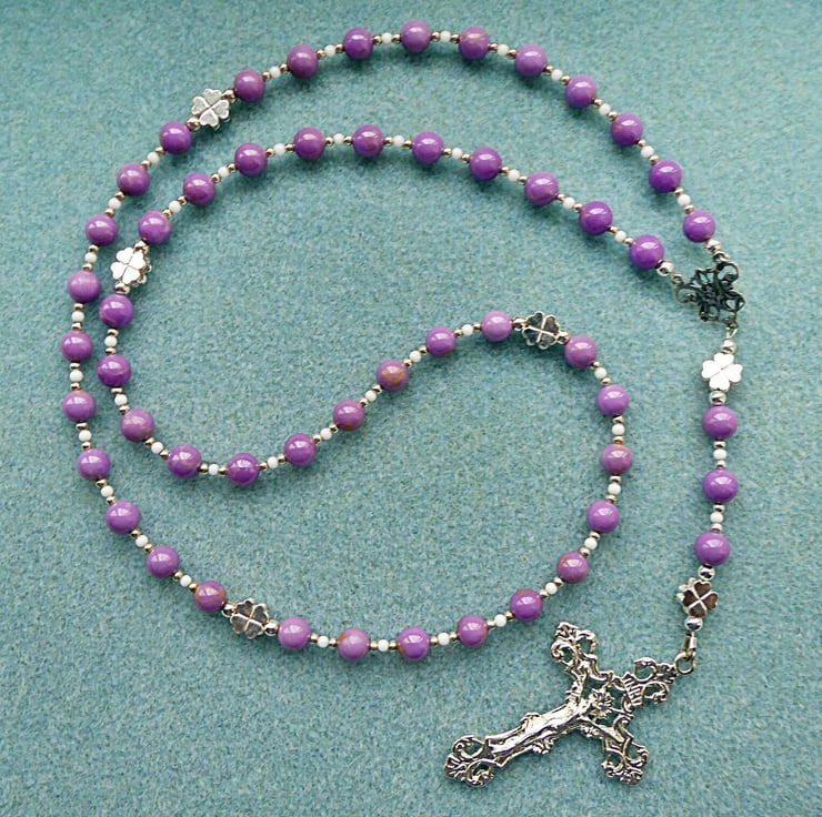 My rosary making all began when a friend who is strongly involved in her church asked for a set of gemstone prayer beads be made for her. Since then I have loved making them and inventing new gem combinations to make each one uniquely beautiful and I will never tire of the feeling of spreading love, peace and comfort through my prayer beads.