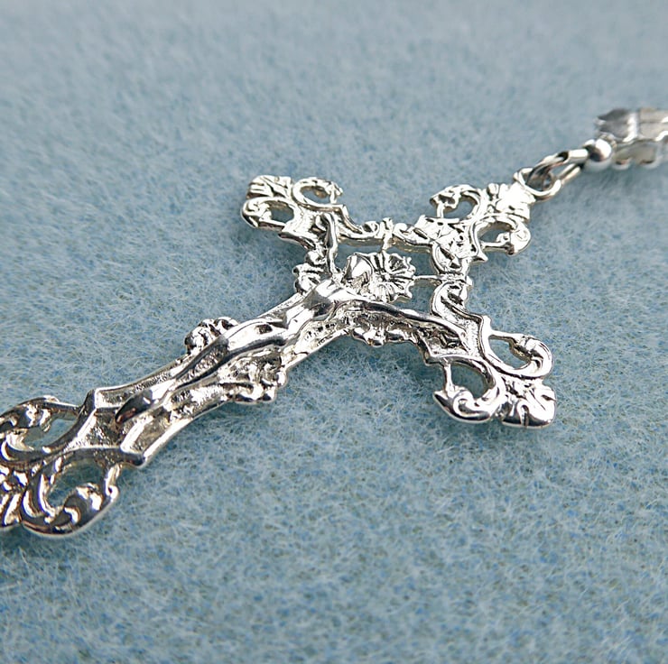 The double sided rosary centre is sterling silver as is the large elaborate crucifix.