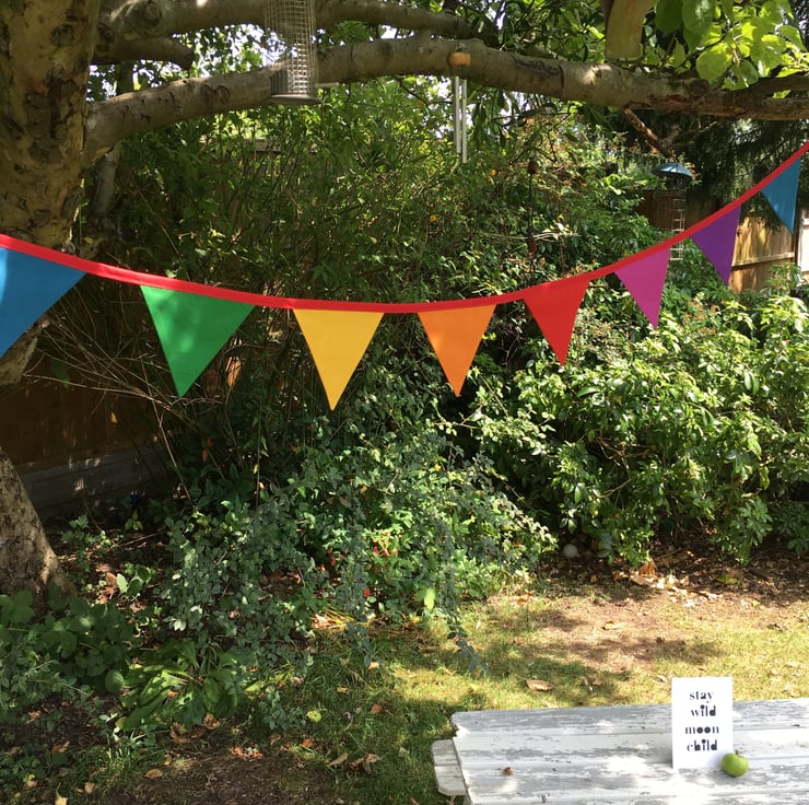 Creating a vibrant, fun atmosphere whether you are updating a playroom space, packing up your tent or van and heading to a festival or just having a fabulous garden party! Rainbow bunting can be kept up or re-used for many events and occasions - we love a bit of rainbow in our house and our bunting always comes away with us!