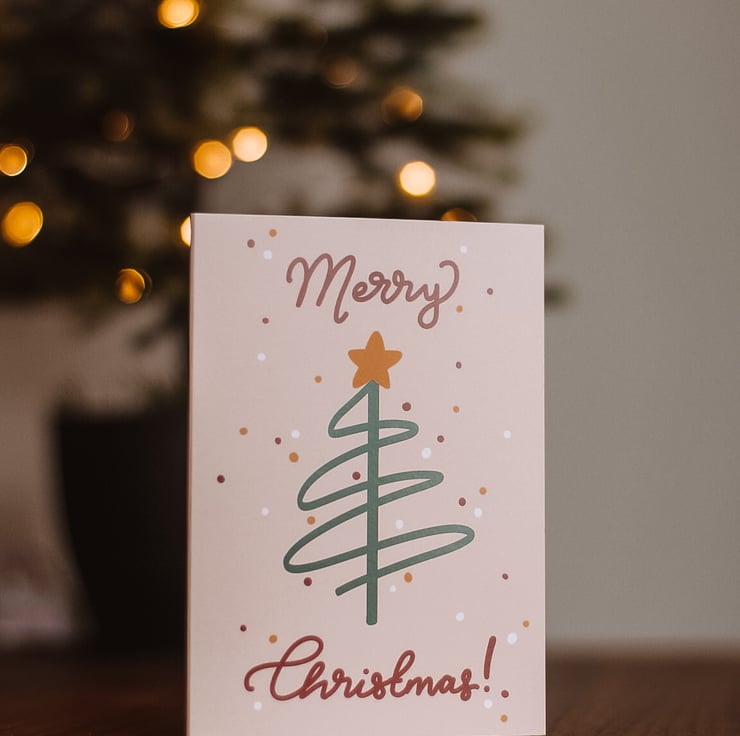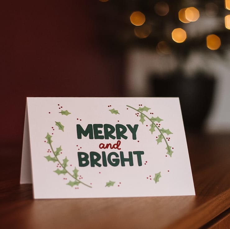 Three A6 Christmas cards in a traditional colour palette, each with a brown kraft envelope. Digitally illustrated & printed in the UK
