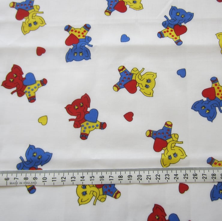 Bundle of 4 fat quarters in children's designs of circus elephants, elephants with hearts, running teddy bears and bunny rabbits.