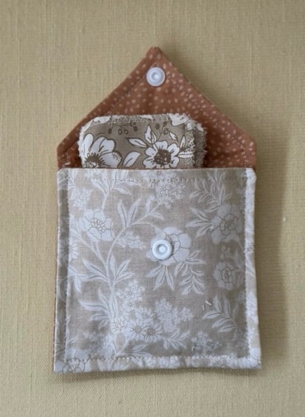 A pretty set of 8 cleansing pads with an attractive fabric envelope to store them. These are made from bamboo nappy fabric which is very soft and sustainable. The backing is 100% cotton. An excellent gift for the eco-friendly as this set is reusable, wash and use again and again. Pads measure approximately 7.5 cm x 6 cm and the cases approximately 11 cm square. A ideal stocking filler. Please specify colour when ordering.