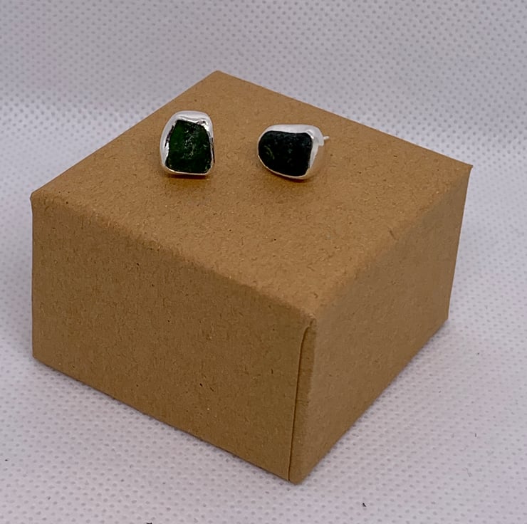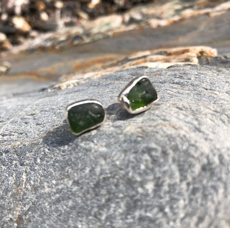 These beautiful dark forest green sea glass earrings have been made using sea glass that has been found along the UK's South West coastline and beautifully paired together, they have been set in a fine silver bezel (.999) with a recycled (ecosilver) sterling silver (.925) stud. These stud earrings have not been hallmarked.