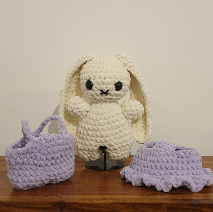 Flopsy is the perfect gift for someone else or yourself, her fluffy body makes for some cozy cuddles! She even has removable clothing to play with and style.