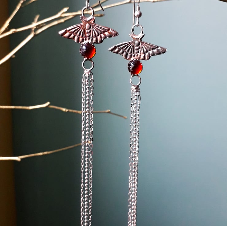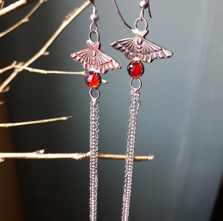They are the perfect accessory for your festive outfit or that extra magical fairytale sparkle. Entirely made with silver, they were dipped in dreamy dark pink and blue patina and finished with these absolutely stunning deep orange red garnet stones and silver chain tassels.
