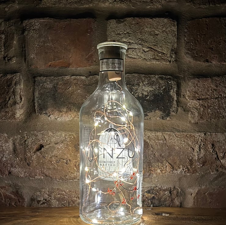 Illuminate your space sustainably with our Upcycled Gin Bottles featuring enchanting fairy lights. Each bottle is a unique work of art, repurposed with care to bring new life and charm. The warm glow of the fairy lights adds a magical touch to your decor, creating a cozy and eco-friendly ambiance. Embrace the fusion of style and sustainability by choosing these upcycled gin bottles – a delightful way to light up your surroundings while making a positive impact on the environment. Elevate your space with the artful combination of upcycled design and enchanting illumination.