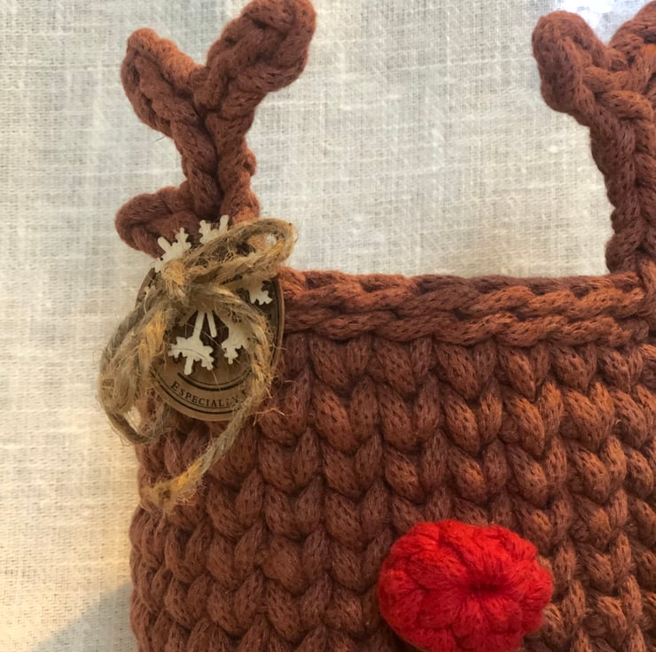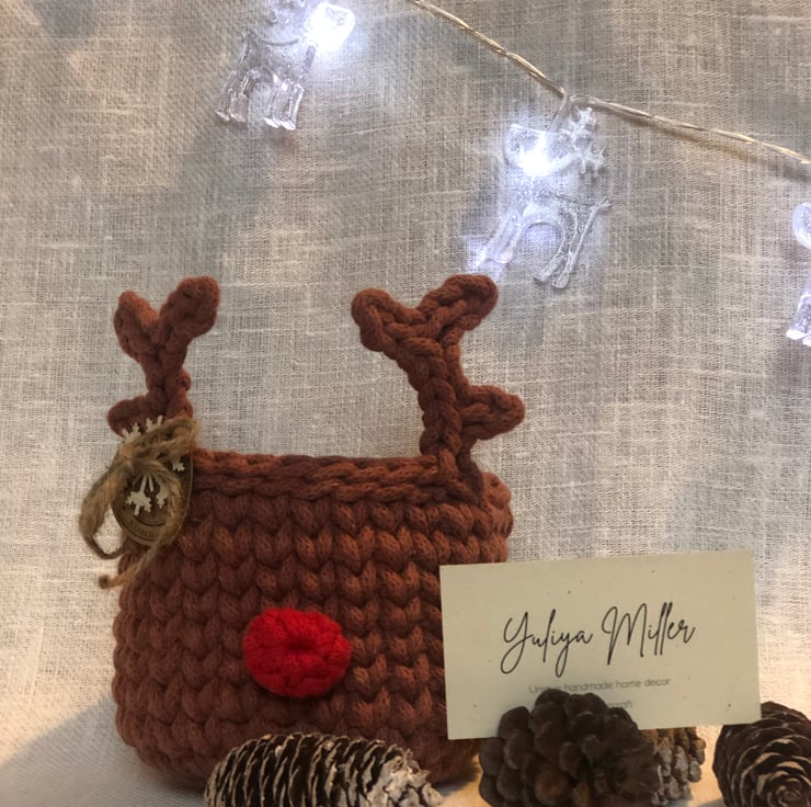 Small reindeer basket with red nose is absolutely something to be a gift this Christmas!!! You can fill it out with sweets.