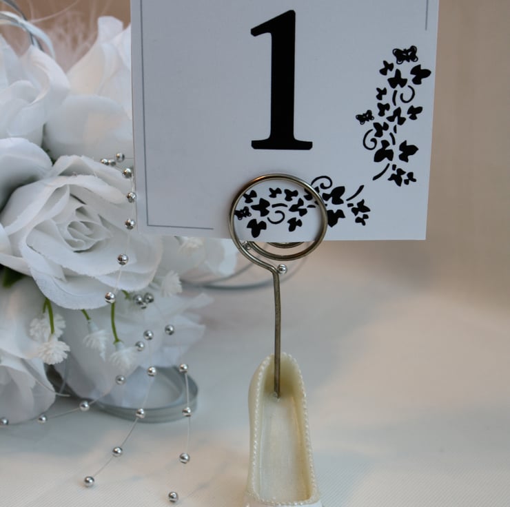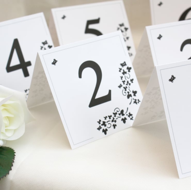 The table numbers have a black butterfly design. they can be used for any celebration eg: weddings, birthdays or anniversaries. They make great decoration's for any table.