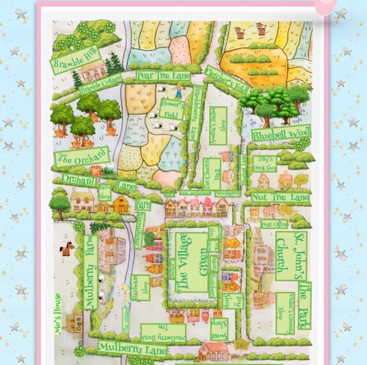 The story book is made from best quality card and is in full colour. There is also a map of Mulberry Green on the first page.