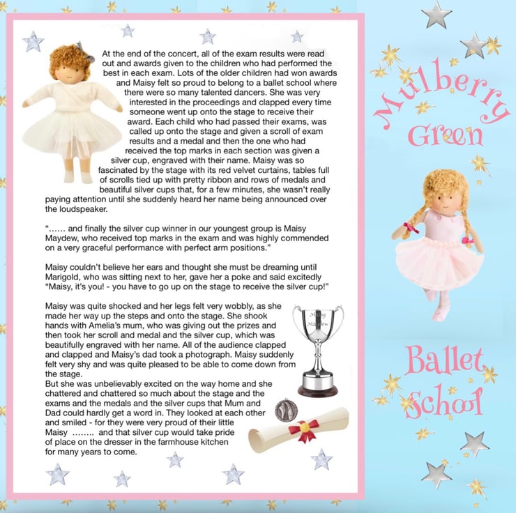 A full colour story book with 31 pages of stories and information for little ones about ballet. The stories are all about the little ballet school at Mulberry Green and feature all of the Mulberry Green characters. Each story is just long enough for bedtime. Suitable for children 3-8 but enjoyed by anyone young at heart.