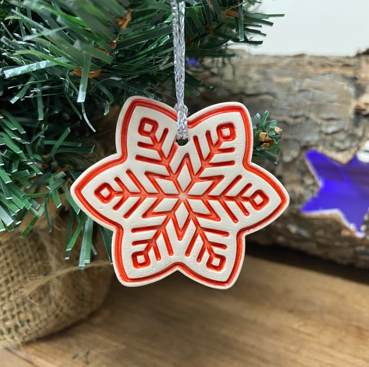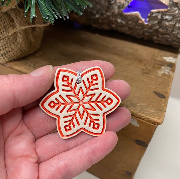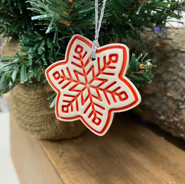 This pottery snowflake tag is made from white earthenware clay and decorated with a snowflake design. It measures 5cm x 5cm. Perfect for adding to that extra special gift or maybe even hanging on the tree!