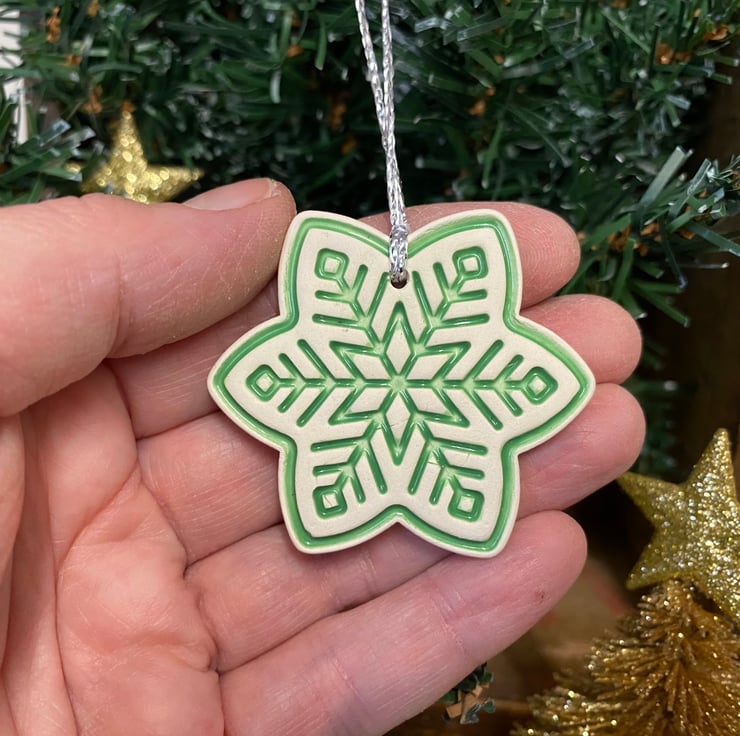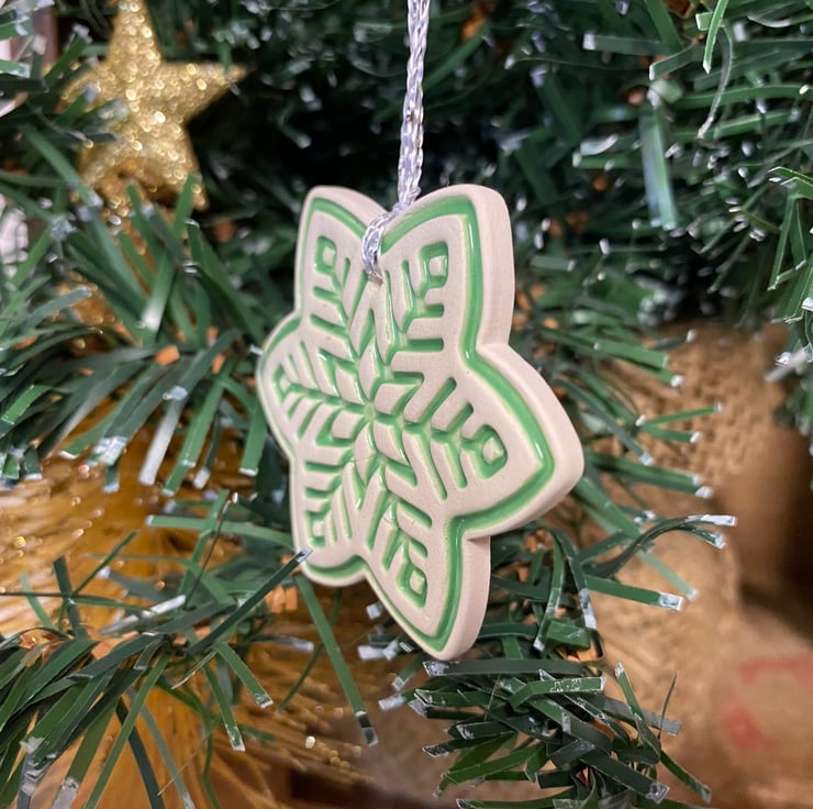 This pottery snowflake tag is made from white earthenware clay and decorated with a snowflake design. It measures 5cm x 5cm. Perfect for adding to that extra special gift or maybe even hanging on the tree!