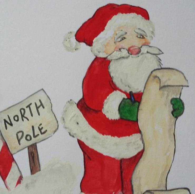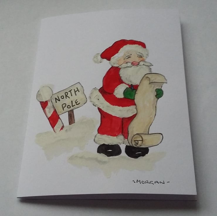 7" X5"" 250 gsm white blank card with an original hand painting of SANTA