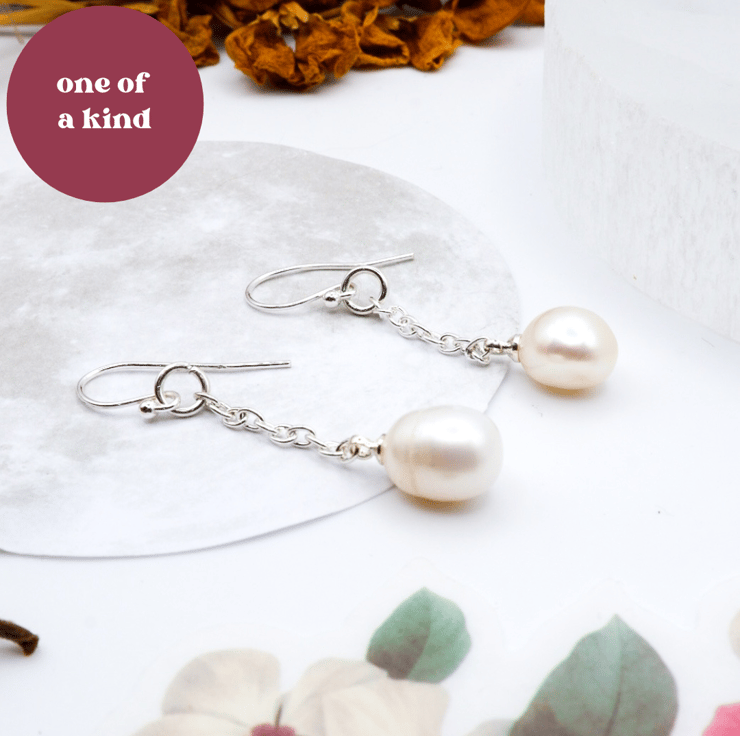These earrings are one of a kind. They'd be absolutely perfect for a beloved bride-to-be looking for a modern twist to the classic bridal pearl jewellery; or even a lovely gift for a pearl wedding anniversary.