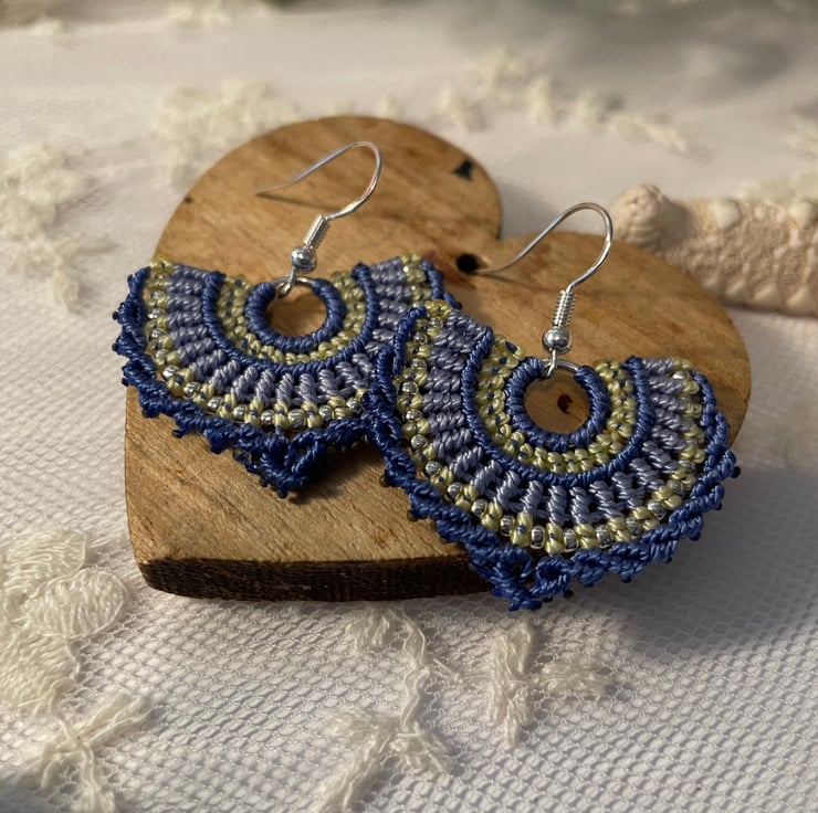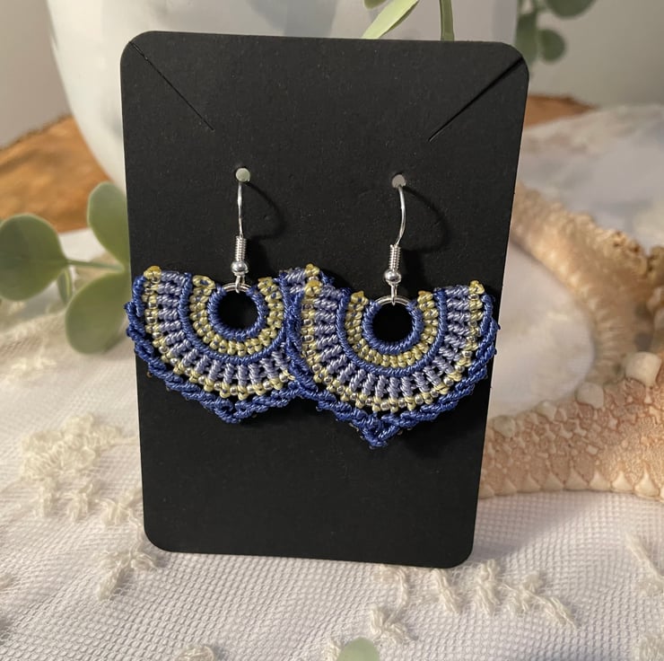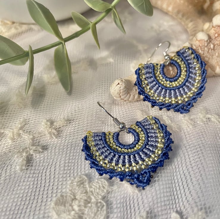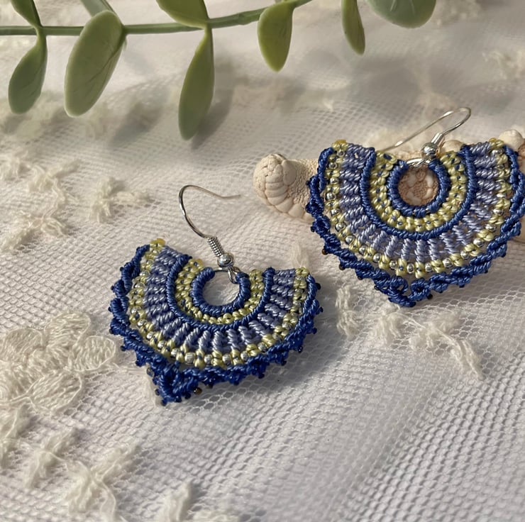 I have created and designed these earrings using the intricate knotting craft of macrame, using extremely strong 0.5mm C Lon thread.