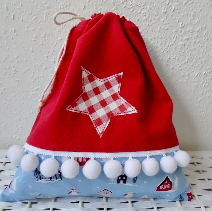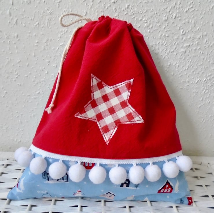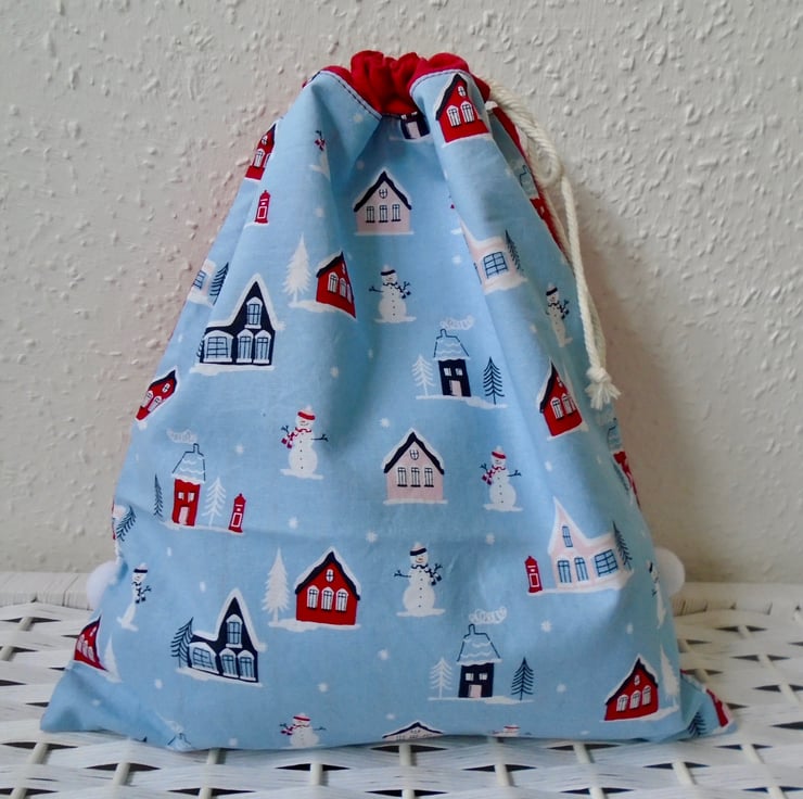 A lovely Christmas Drawstring Bag , ideal used as a gift bag / bits & bobs / gift
