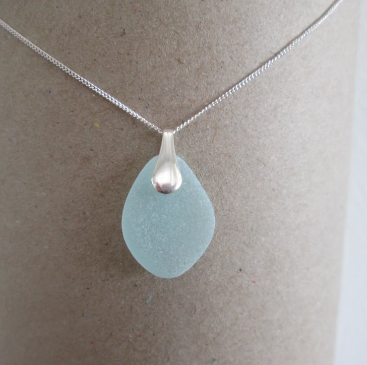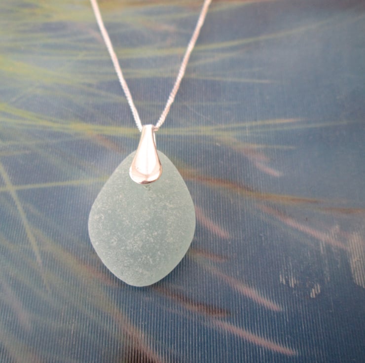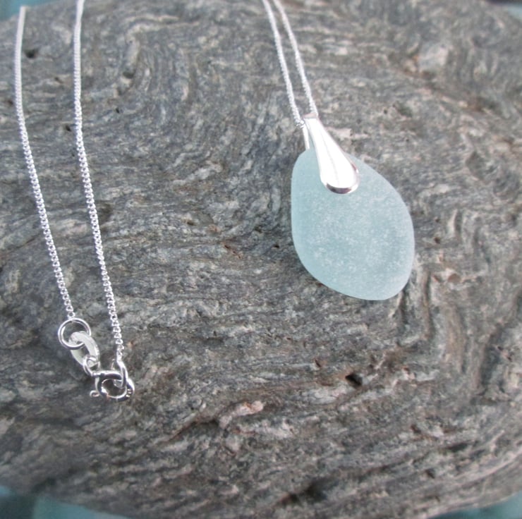 Sterling Silver 925 16 inch chain with a pretty Aqua Seaglass pendant, the piece of glass is 2.2 cm long. This would make a lovely gift for a loved one or a treat for yourself.