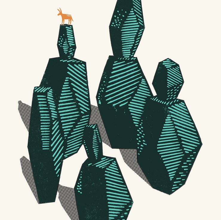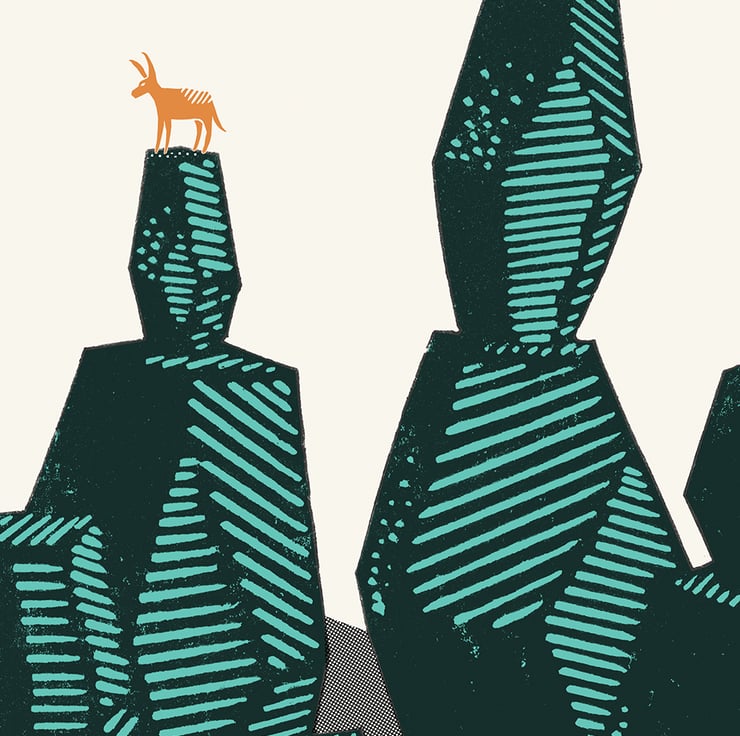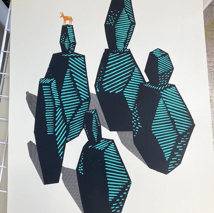 This is from my second series of prints featuring donkeys exploring a sculptural landscape. I created the prints originally for my first major solo exhibition, entitled 'Donkey Nonsense' at The Millennium Gallery in Sheffield in 2023.