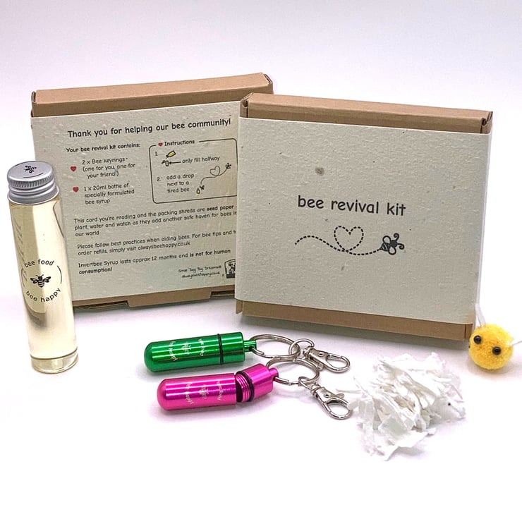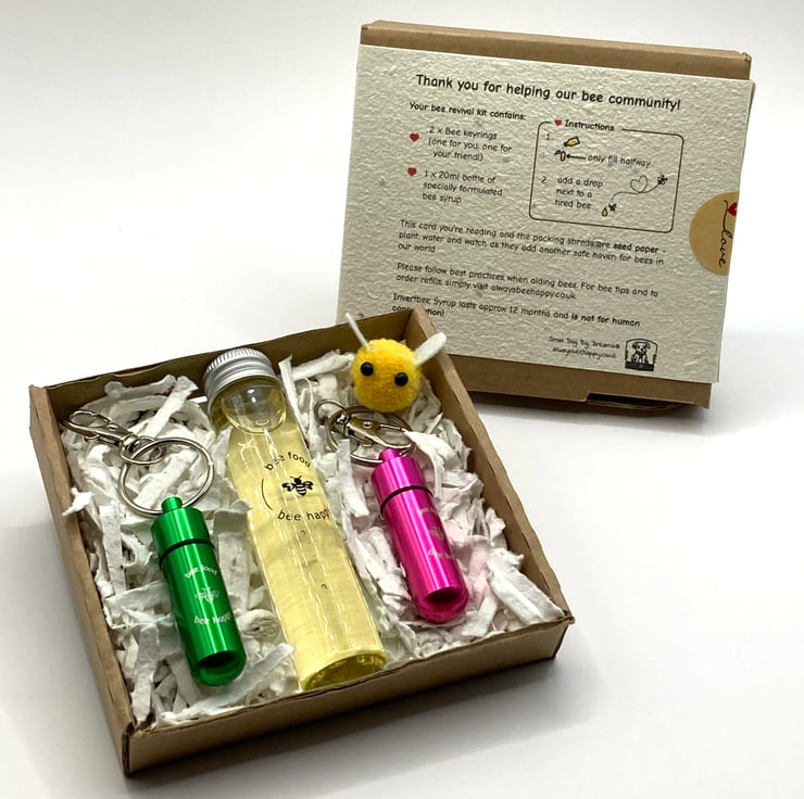 With our revival kit, you can keep a little reservoir of syrup handy in a keyring to provide a quick energy boost for any ailing bees you spot while out and about. It's like having a bee-specific energy drink at your fingertips!