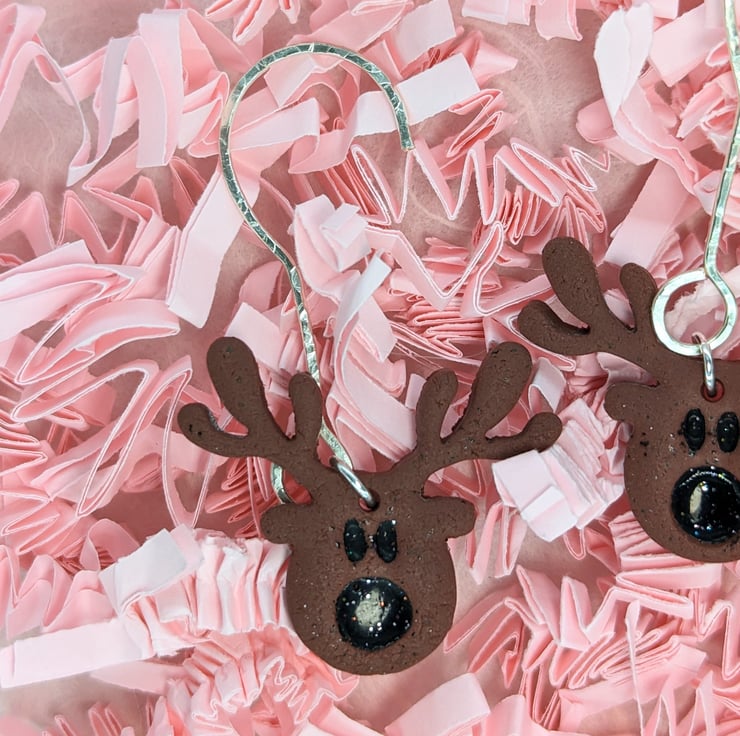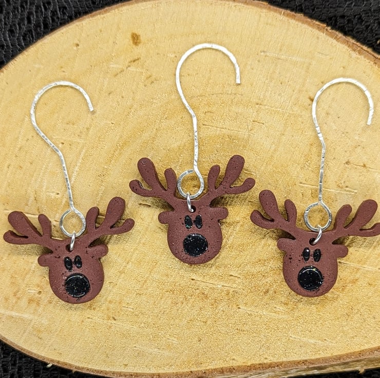 3 Rudolph tree decorations with black noses to light your Goth sleigh through Christmas. Each comes with a jump ring and decorated silver hook attached.