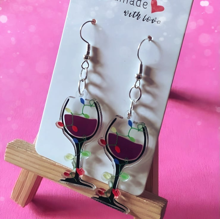Super Fun Red Wine Glass Christmas Earrings