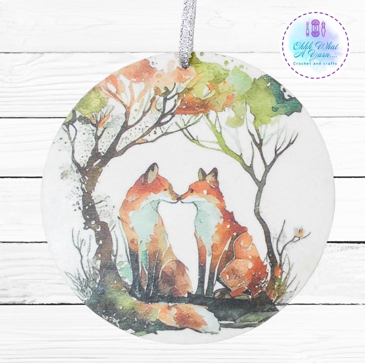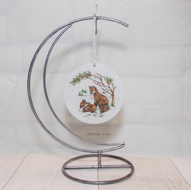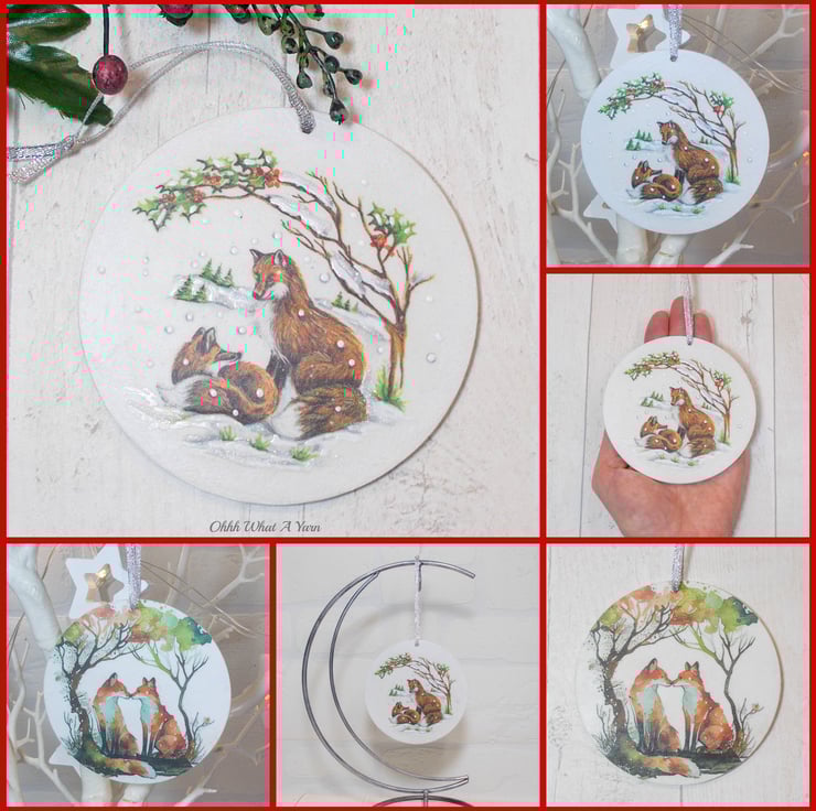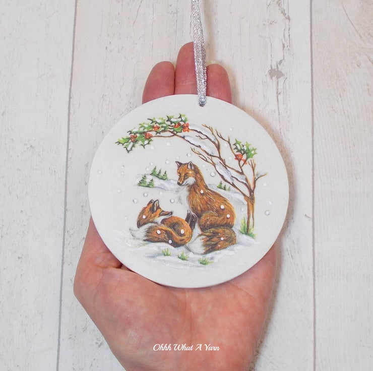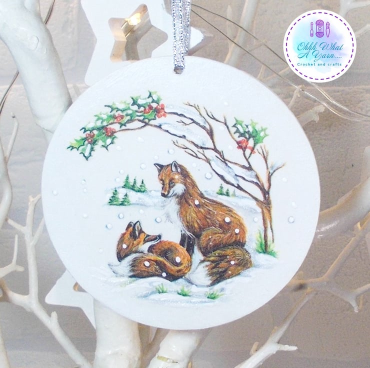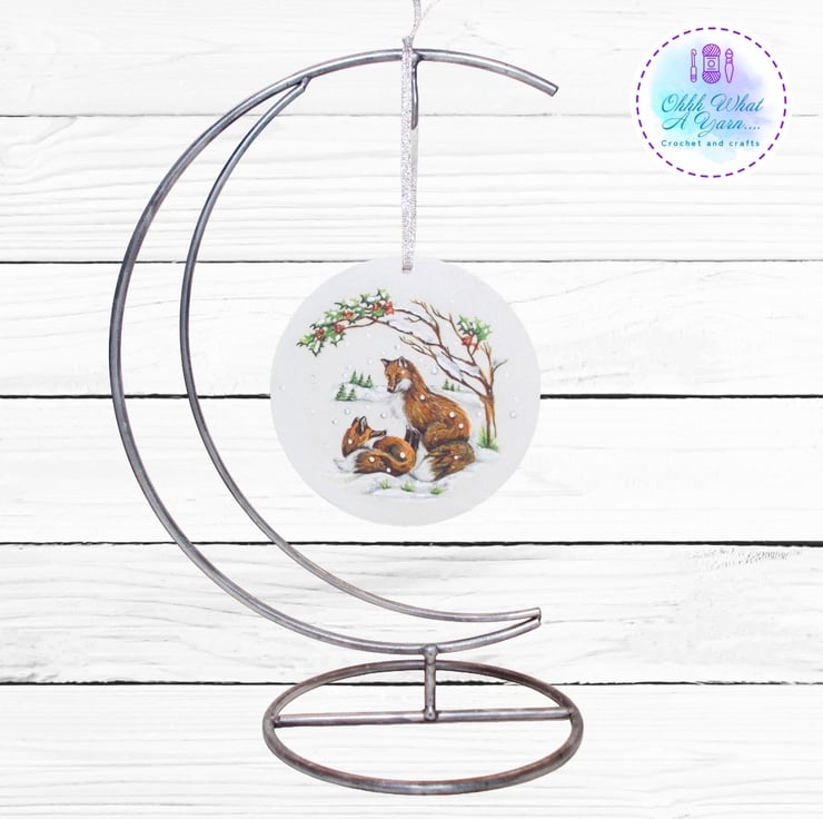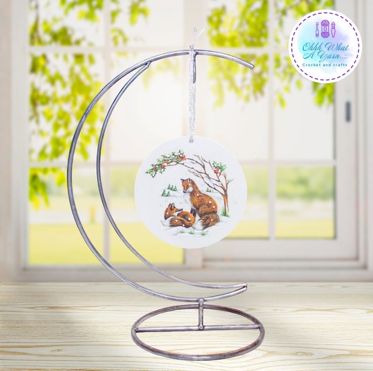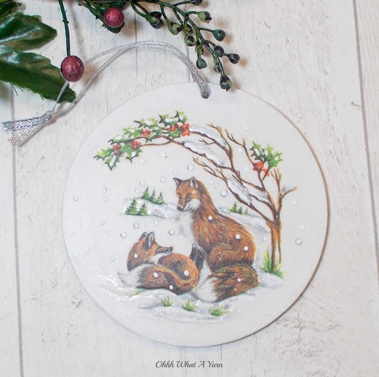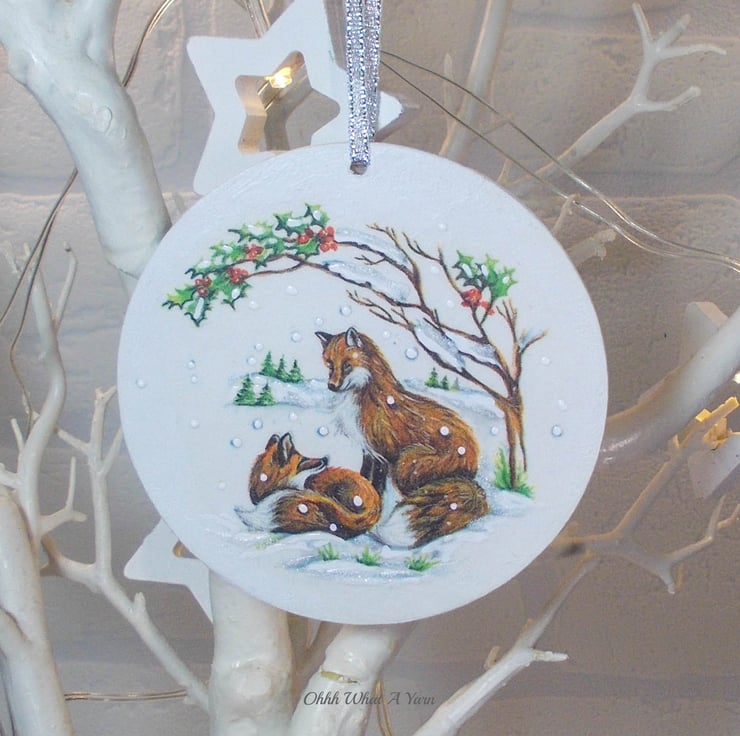 This pretty winter foxes decoration has been created on a 10cm MDF circle.
