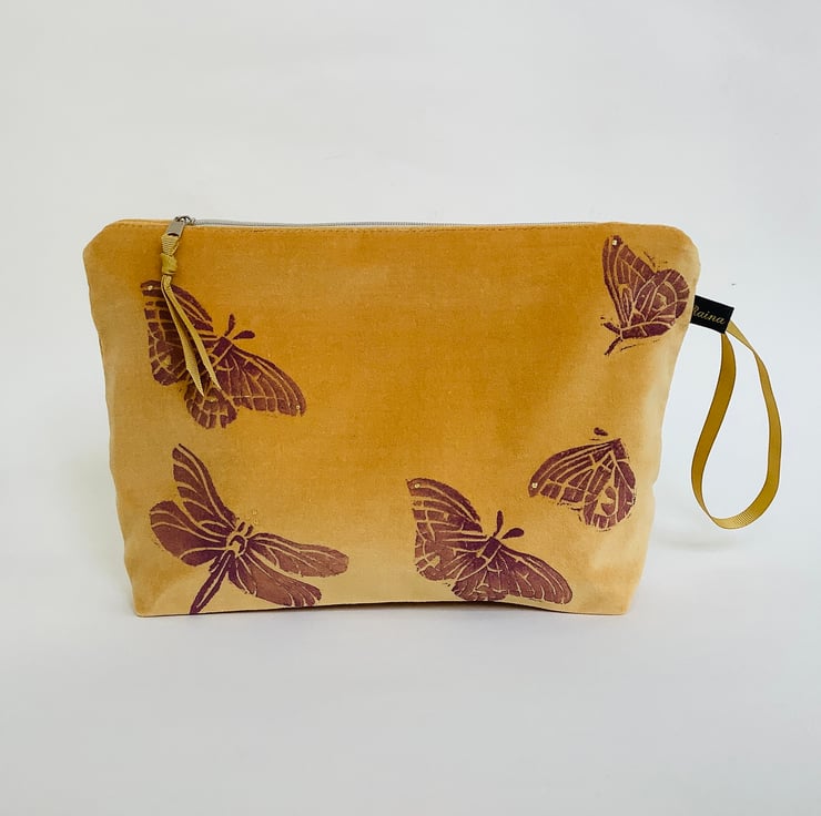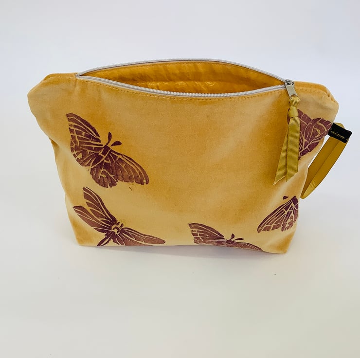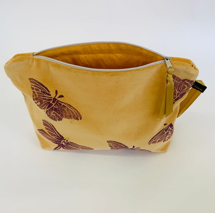 Ideal for the modern aesthete, our Yellow Velvet Butterfly and Dragonfly Makeup Bag effortlessly combines practicality with artistic finesse, making it a must-have accessory.