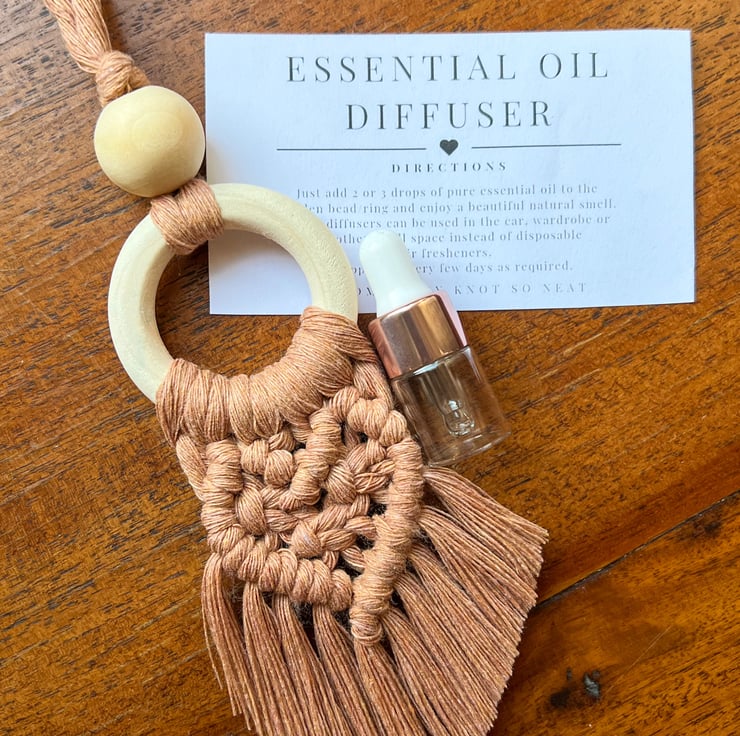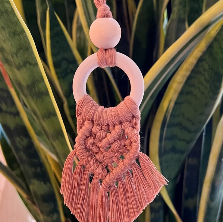Macrame car diffuser, essential oil air freshener, mirror charm - brick red