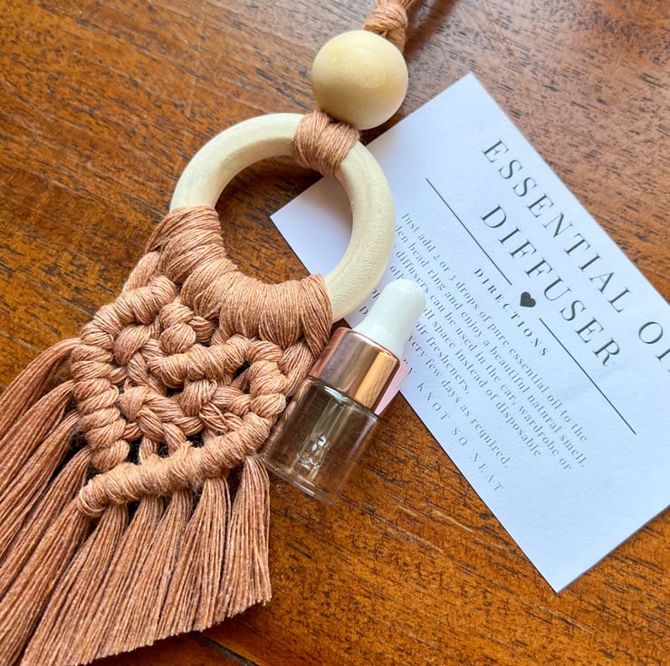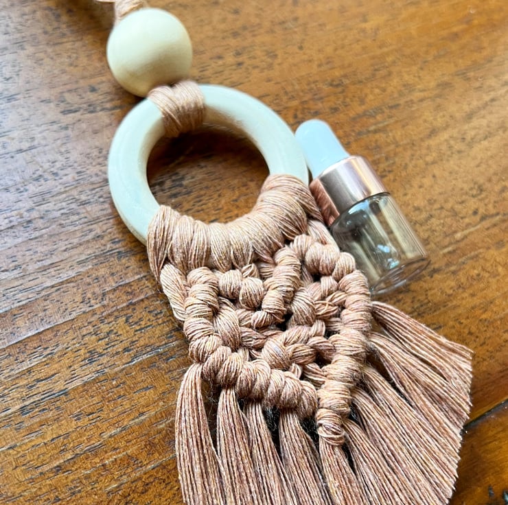 Handmade macrame car rear view mirror diffuser, boho look and nice smell for your car.