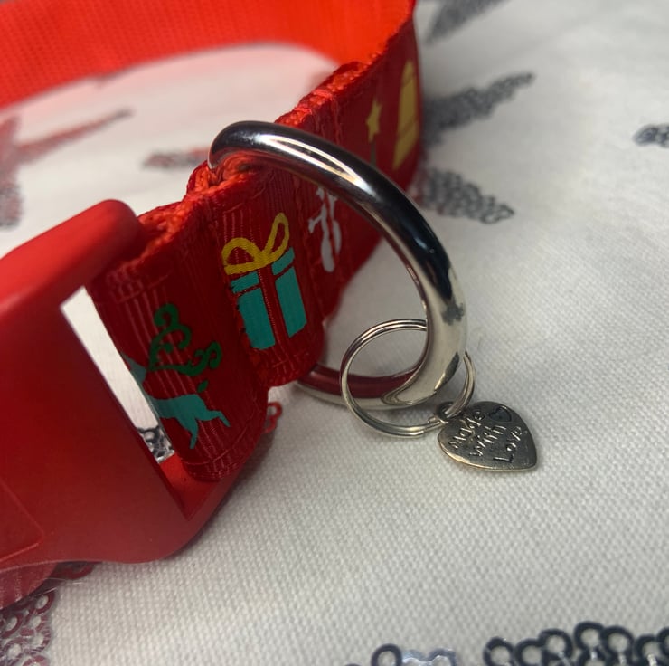 Handmade Christmas dog collar complete with Tibetan silver charm