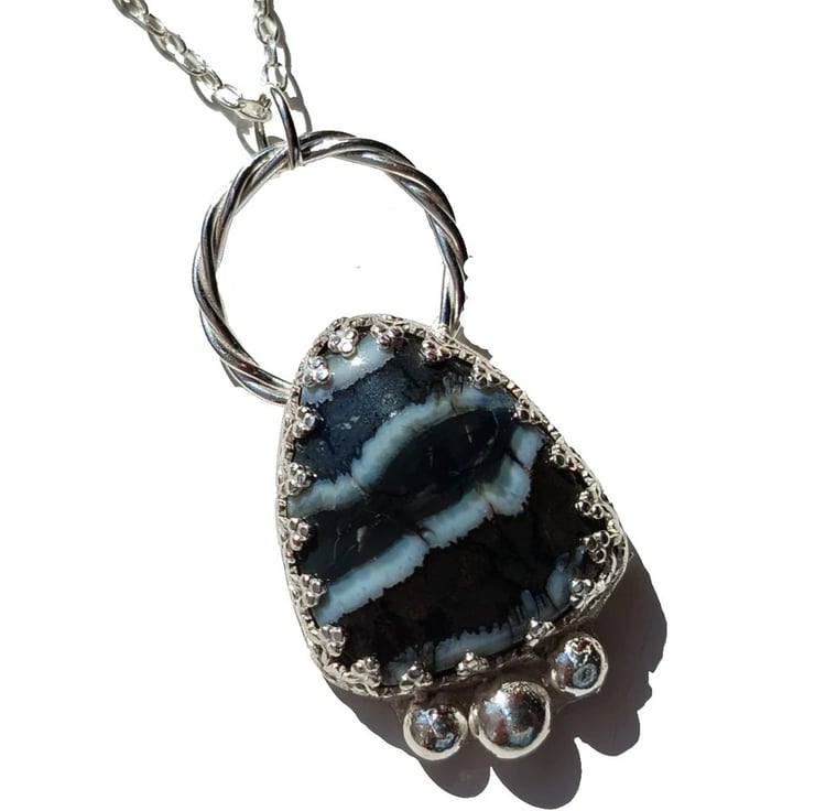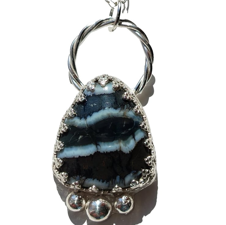 Handmade Recycled Sterling Silver .925 pendant with a fantastic specimen of a fossilised Mammoth Tooth!