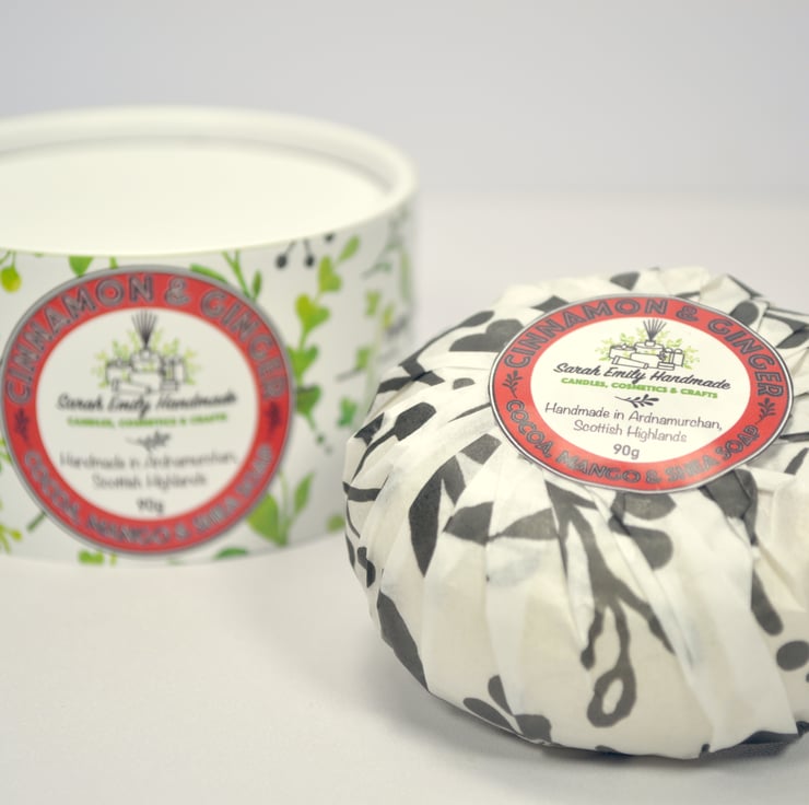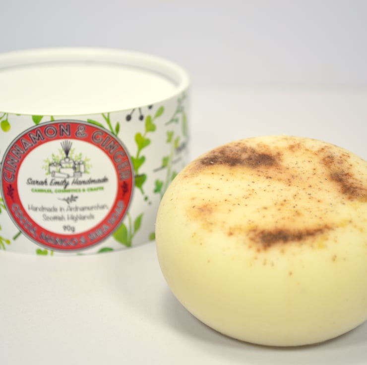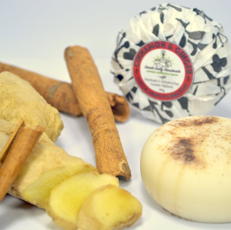 Our Cinnamon & Ginger soap is lovingly handmade in the Scottish Highlands. We use a luxurious Cocoa, Mango & Shea Butter soap base, the addition of essential oils & a little decoration to create a beautiful bar of soap.