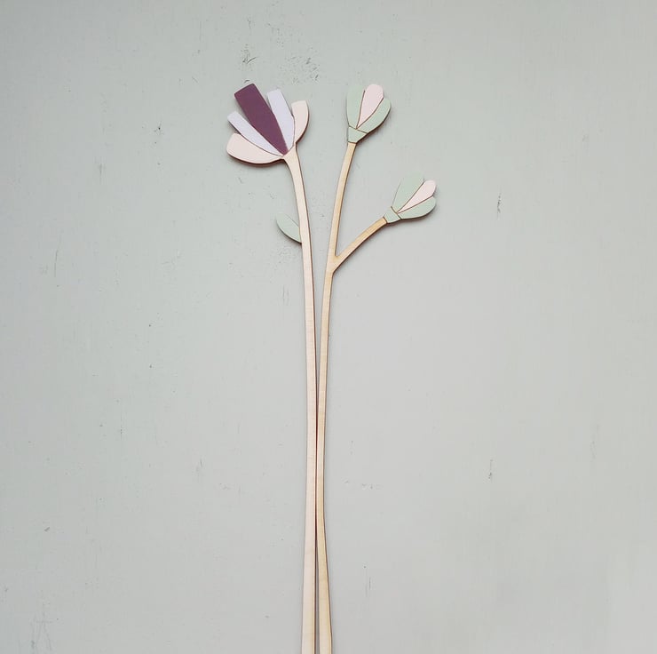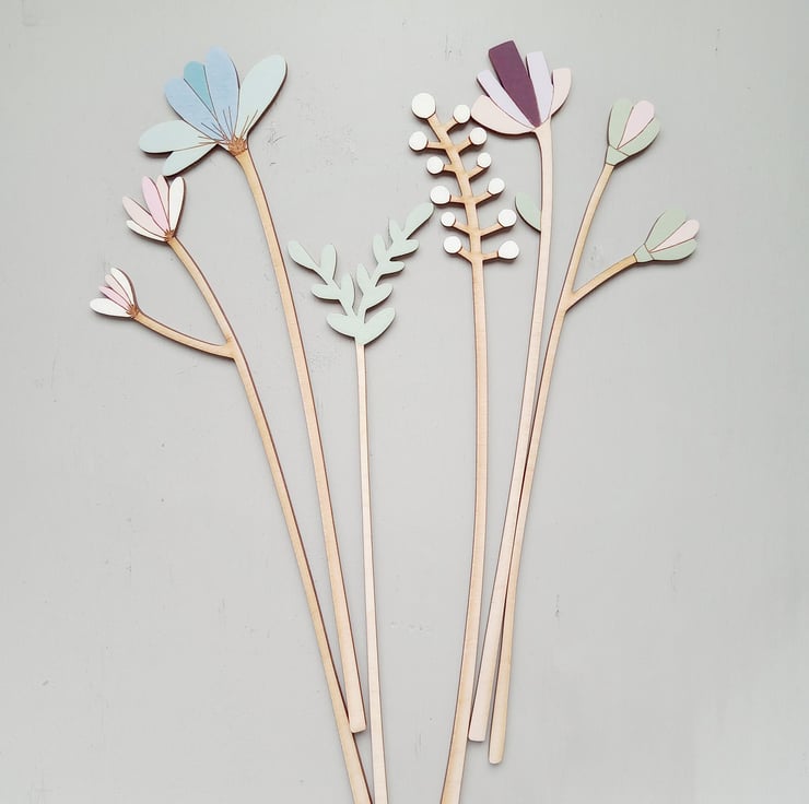 The stem is made from high quality 3mm laser cut birch plywood painted on one side with engraved details; it measures approx 23.5cm