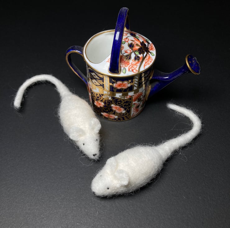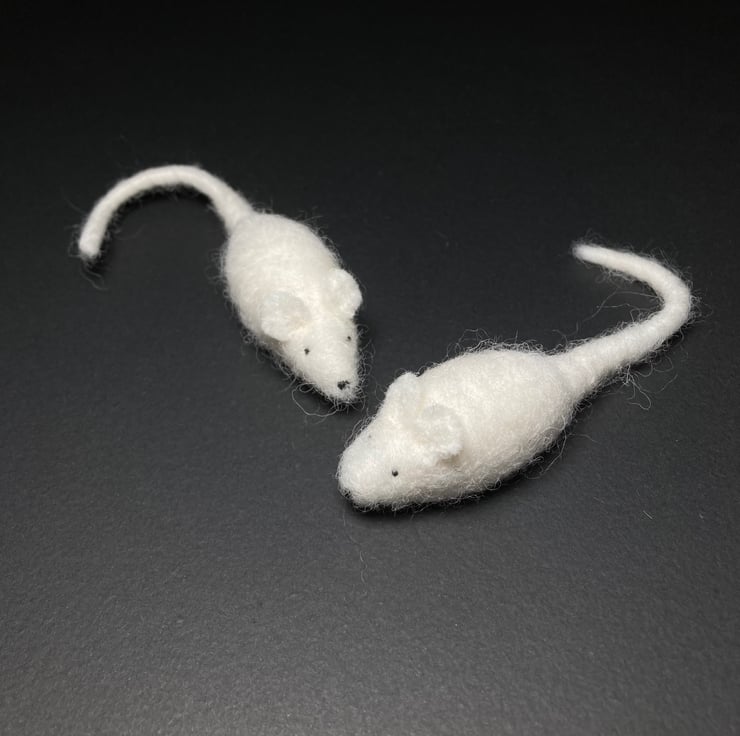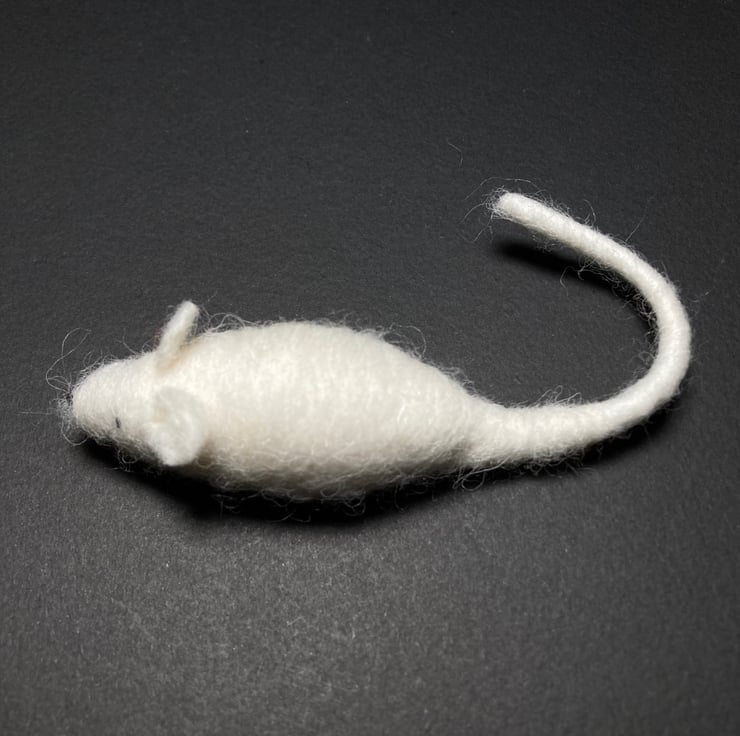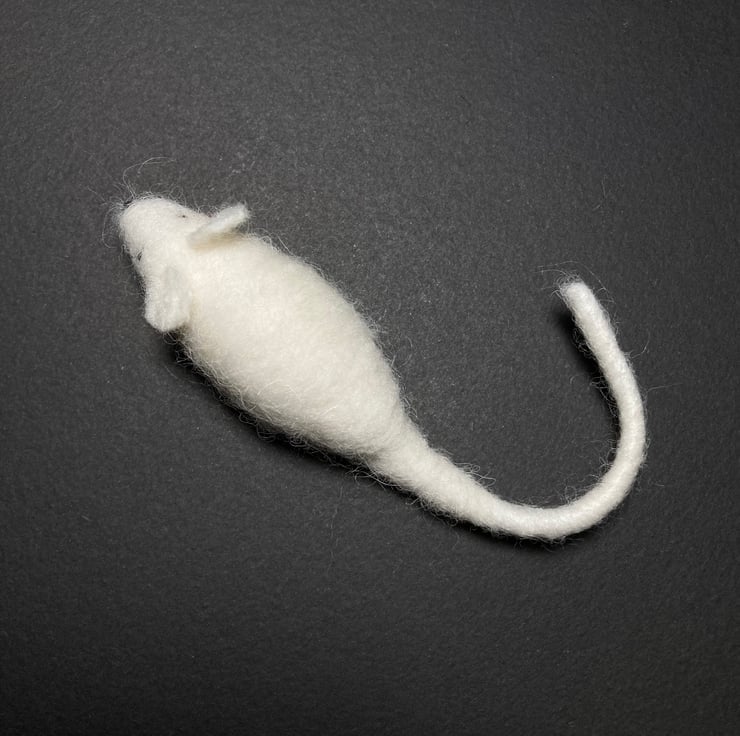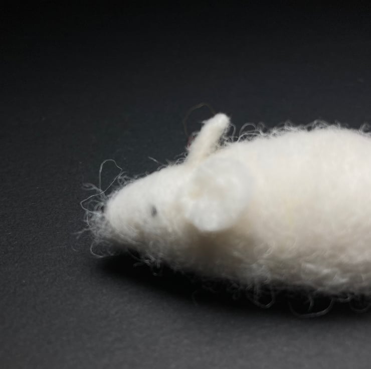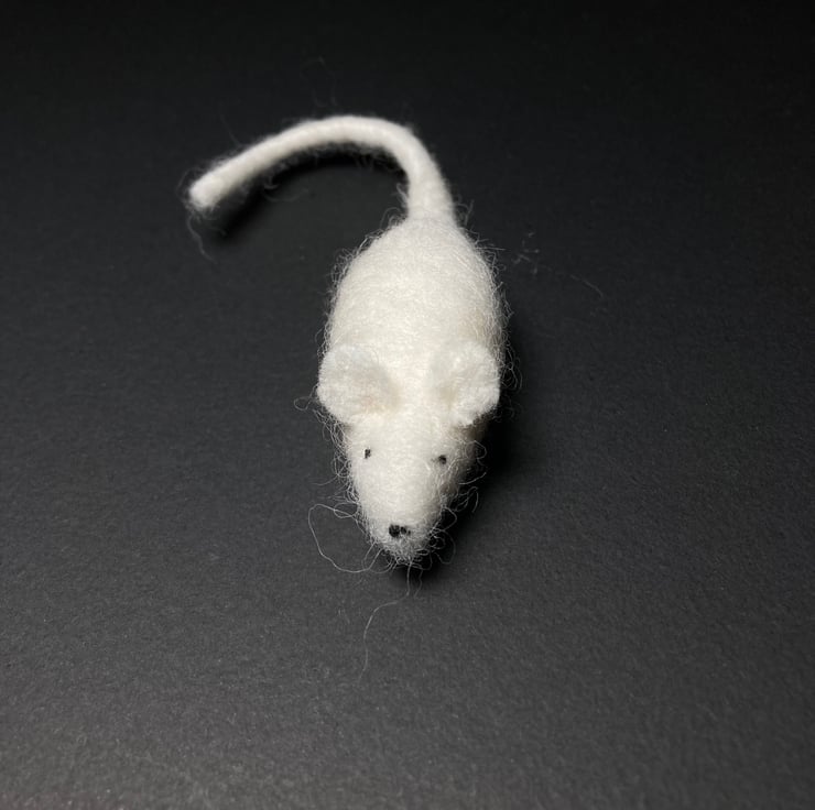 An adorable little white mouse needle felted using Corriedale woollen fibres and a barbed felting needle to sculpt him into shape. This listing is for one mouse. The tail has been formed around a central pipe cleaner allowing it to be bent as desired. Tiny felt ears have been added along with the note and eyes, stitched with black thread.