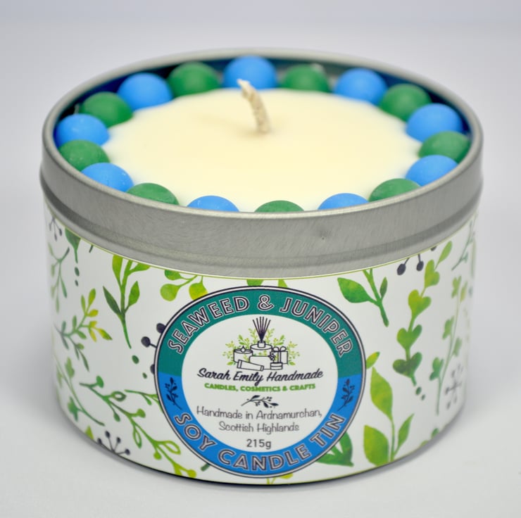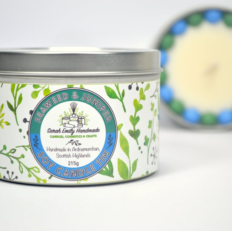 Invite a fresh ocean breeze into your home with our charming Seaweed & Juniper Candle Tin!