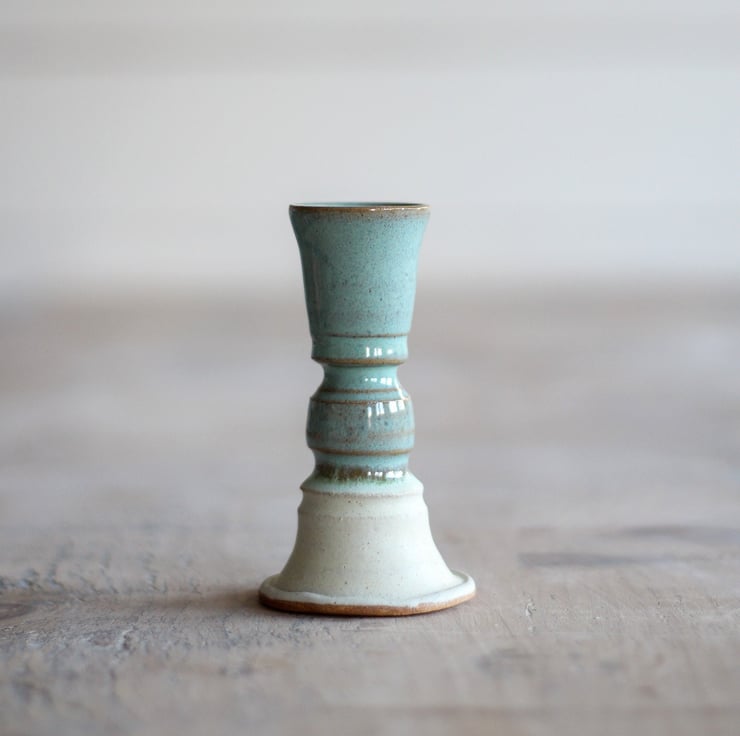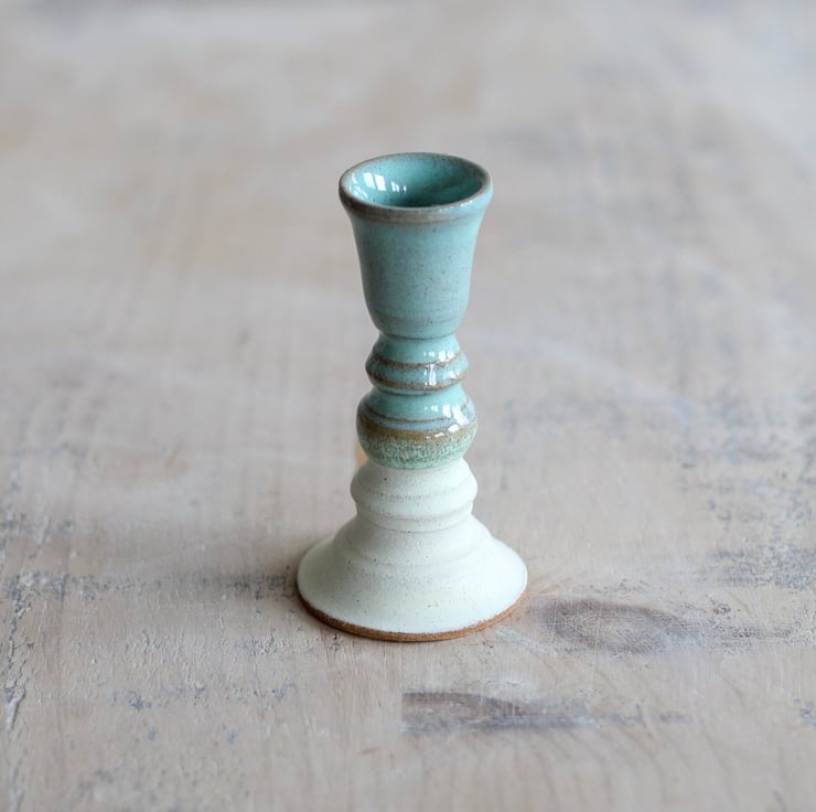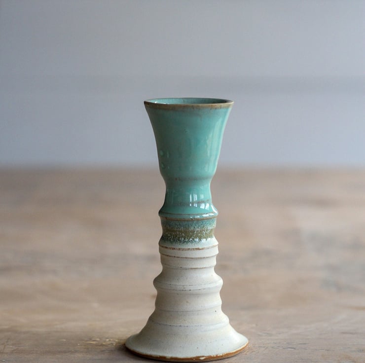 Thrown on my potter s wheel using buff stoneware clay. Allowed to dry to leather hard then put back on the wheel and the detail carved. Dip glazed in Duck Egg Blue & Chalky white combo. Fired to 1220 degrees centigrade.
