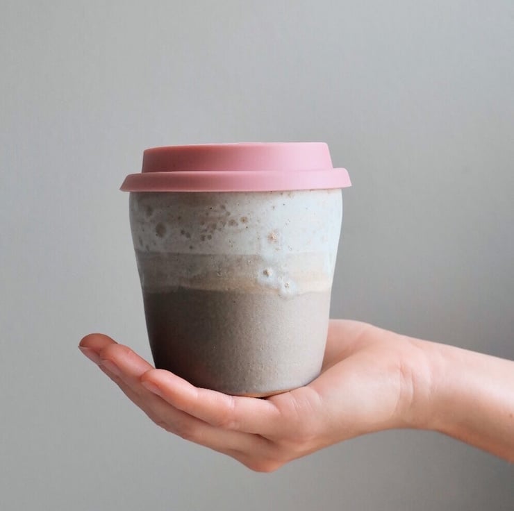 Say bon-voyage to single use beverage cups with my eco-friendly stoneware travel mug.