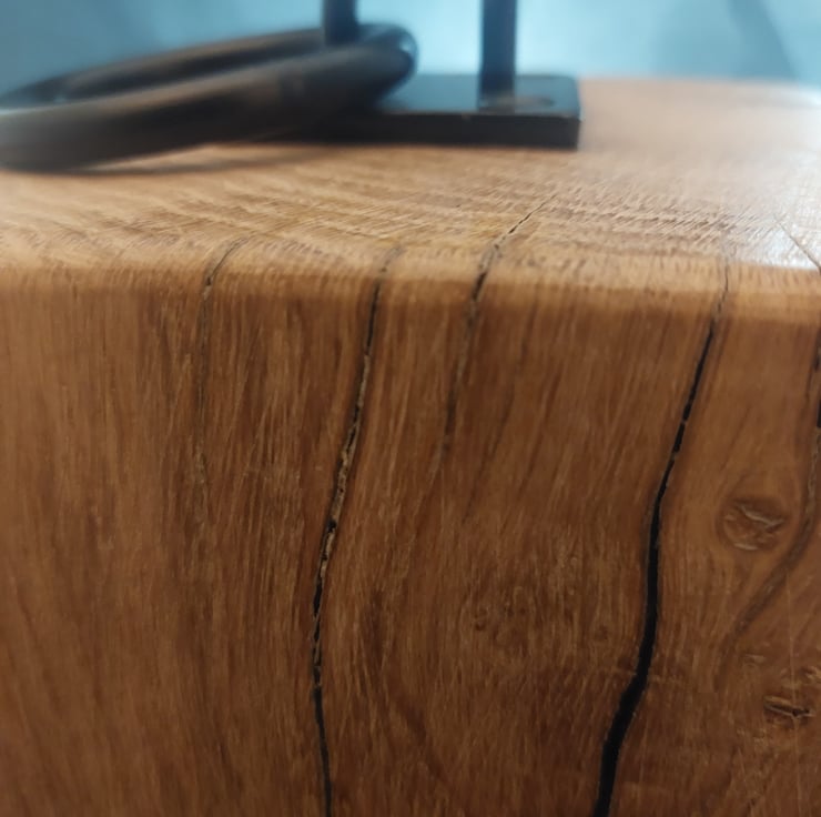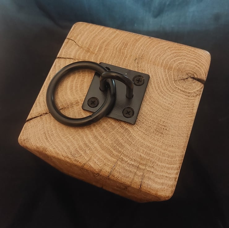Beautifully finished handcrafted wooden oak doorstop with black metal pull handle. Handcrafted in shropshire from oak, sanded and varnished. Measures 20x14x14cm