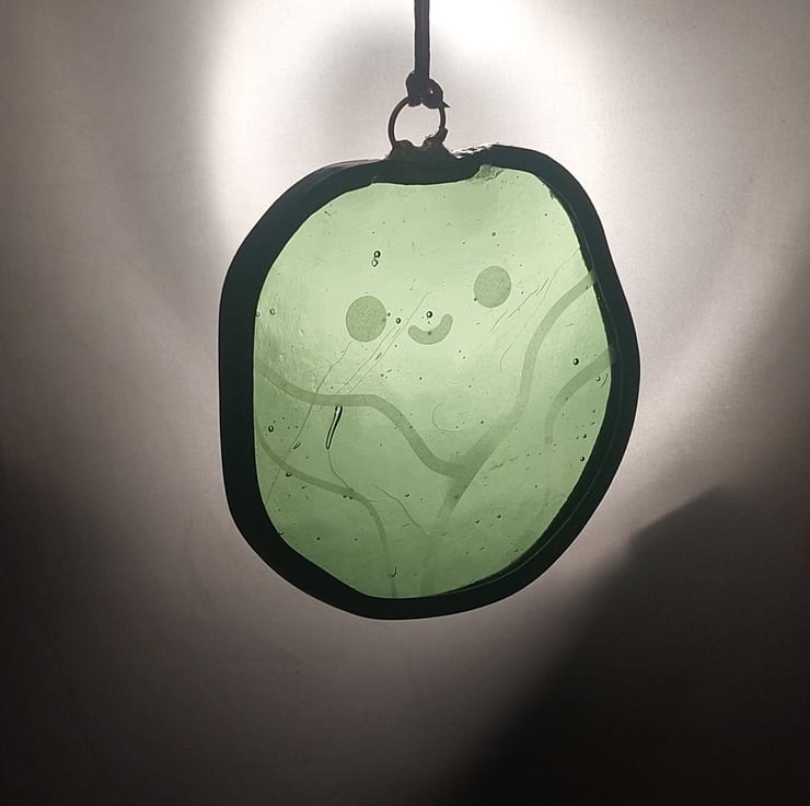 Stained glass handmade leaded sprout. Measures approx 8x7cm